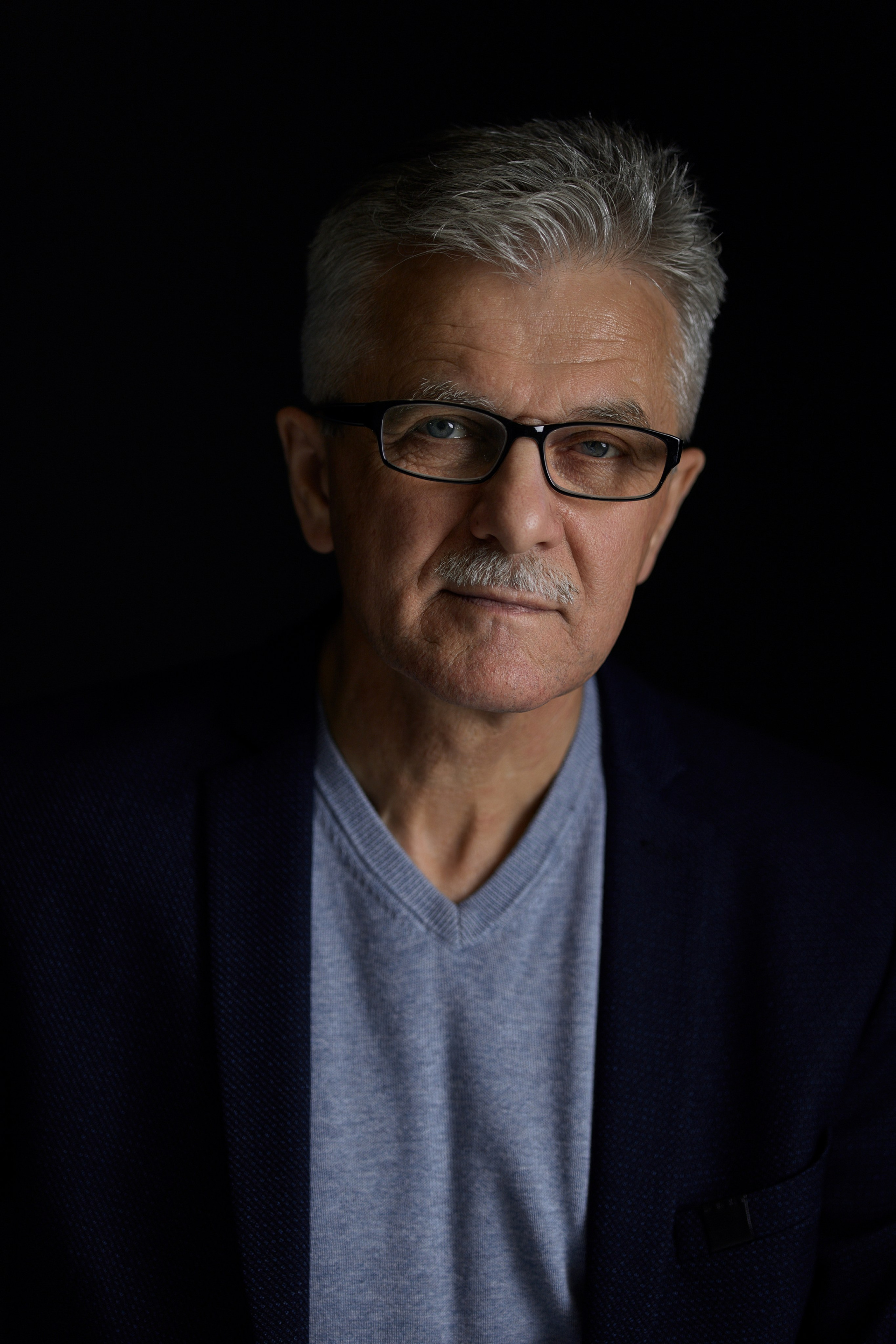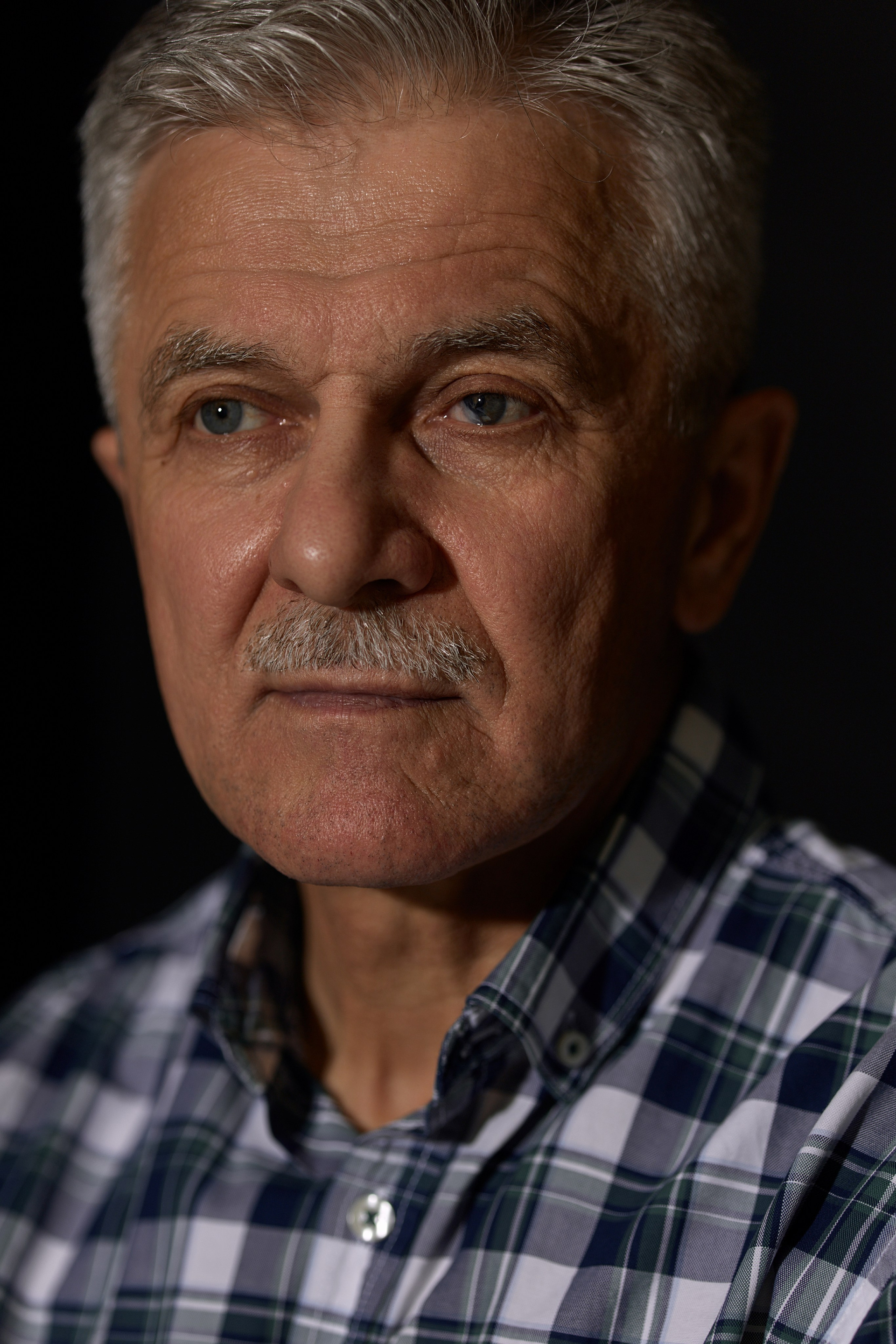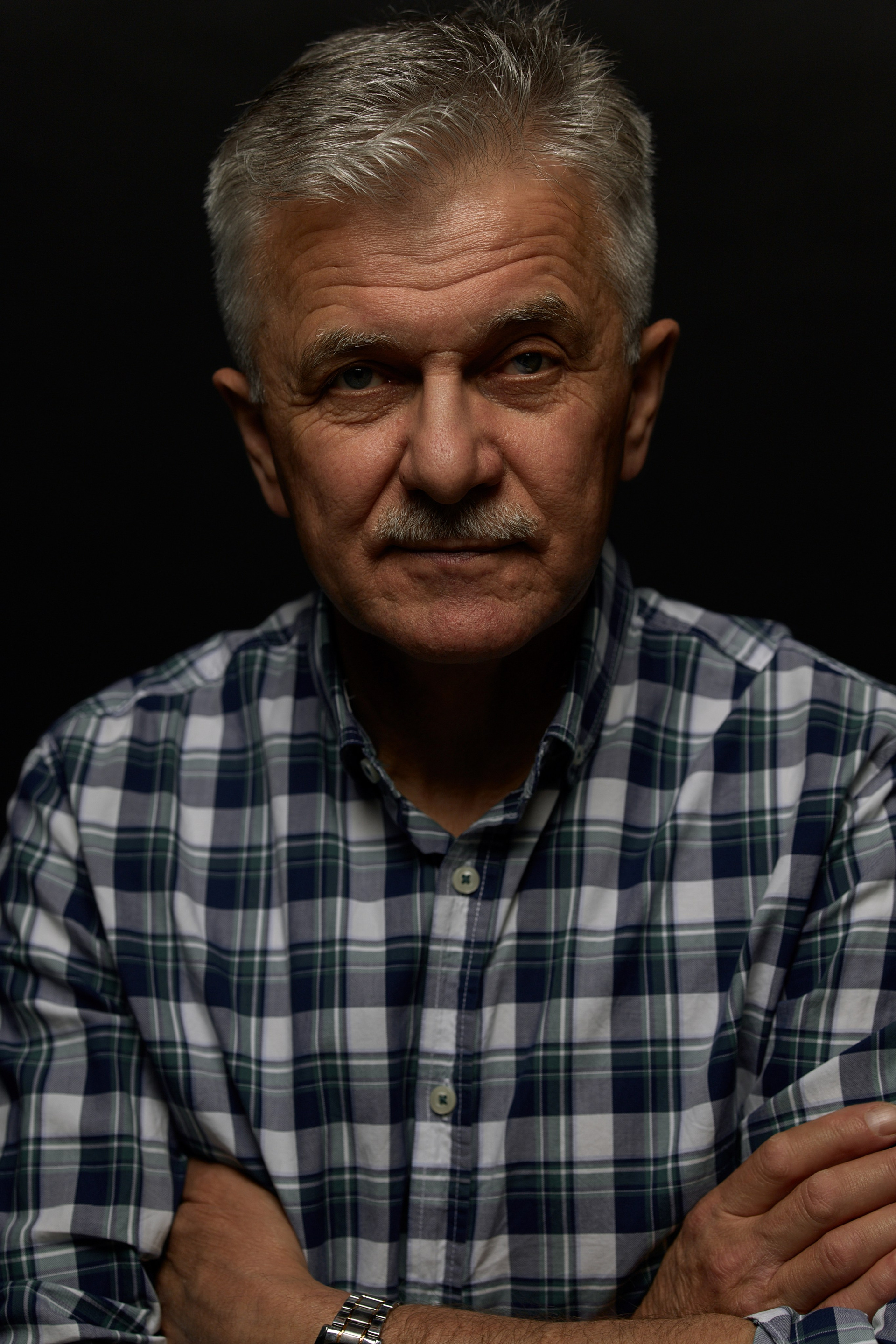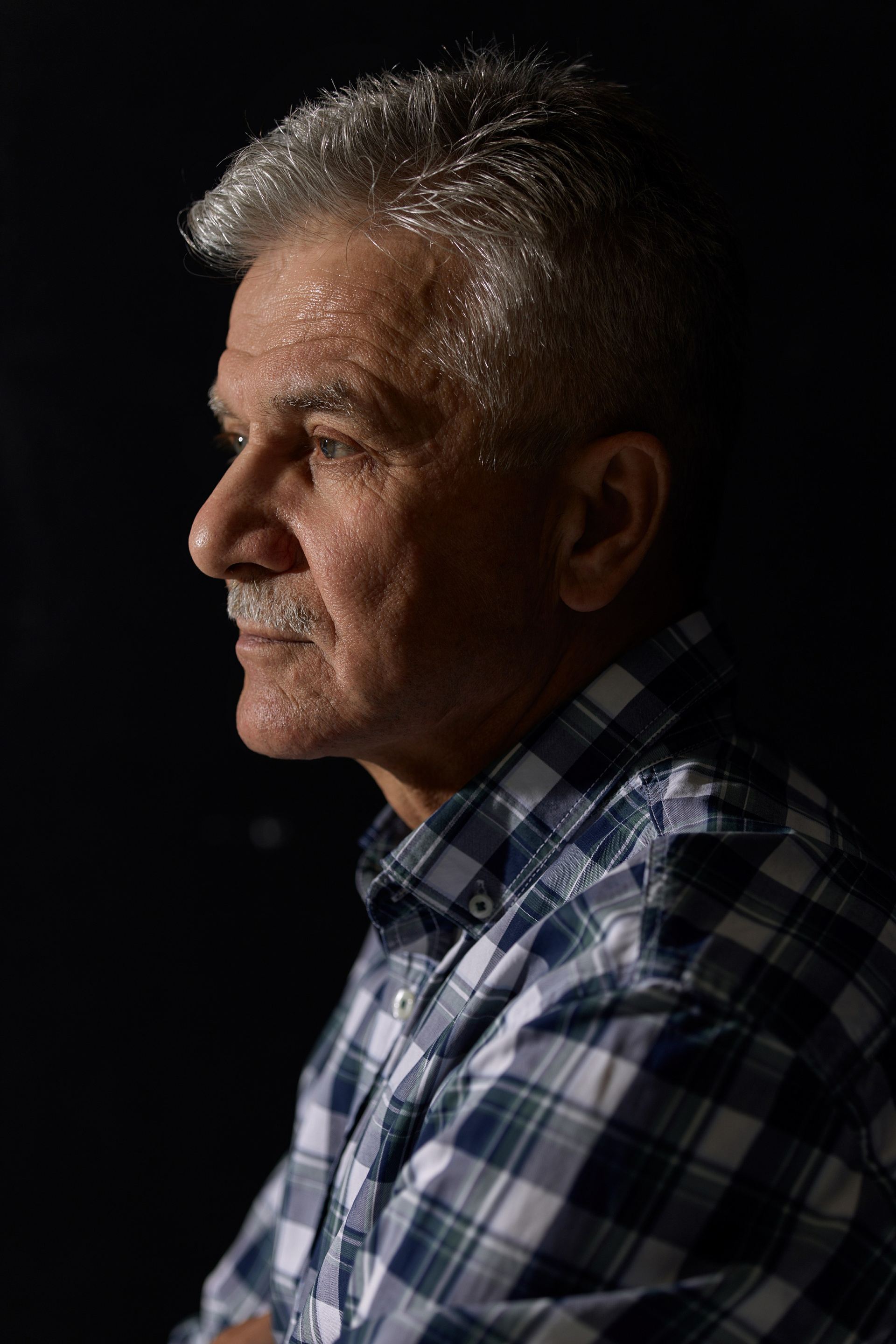 Мы снимали на циклораме — минималистичный фон подчеркивал личность героя и исключал визуальный шум. Дополнительно я использовал черные флаги, чтобы создать глубокий и выразительный фон, выгодно выделяющий Василия на снимках.